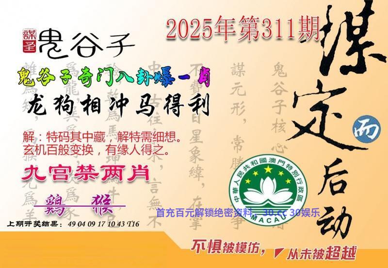 【鬼谷子】315期:“金钱美女加权势”这句话反映了一种社会现象和价值观,即在某些人眼中,金钱、美女和权势是衡量成功和幸福的重要标准 【八肖】:狗龙虎羊牛猪马兔 【五肖】:狗龙虎羊牛 |